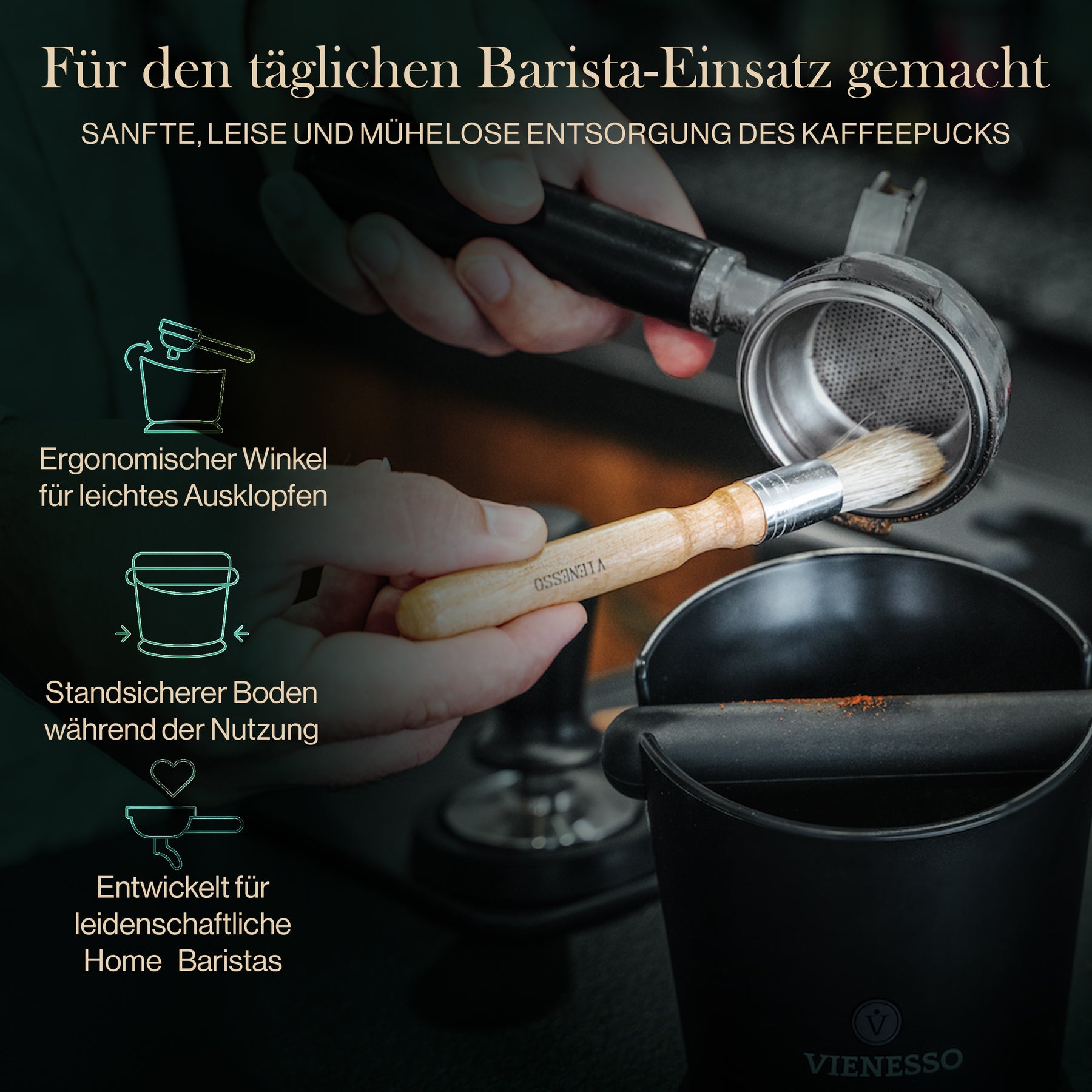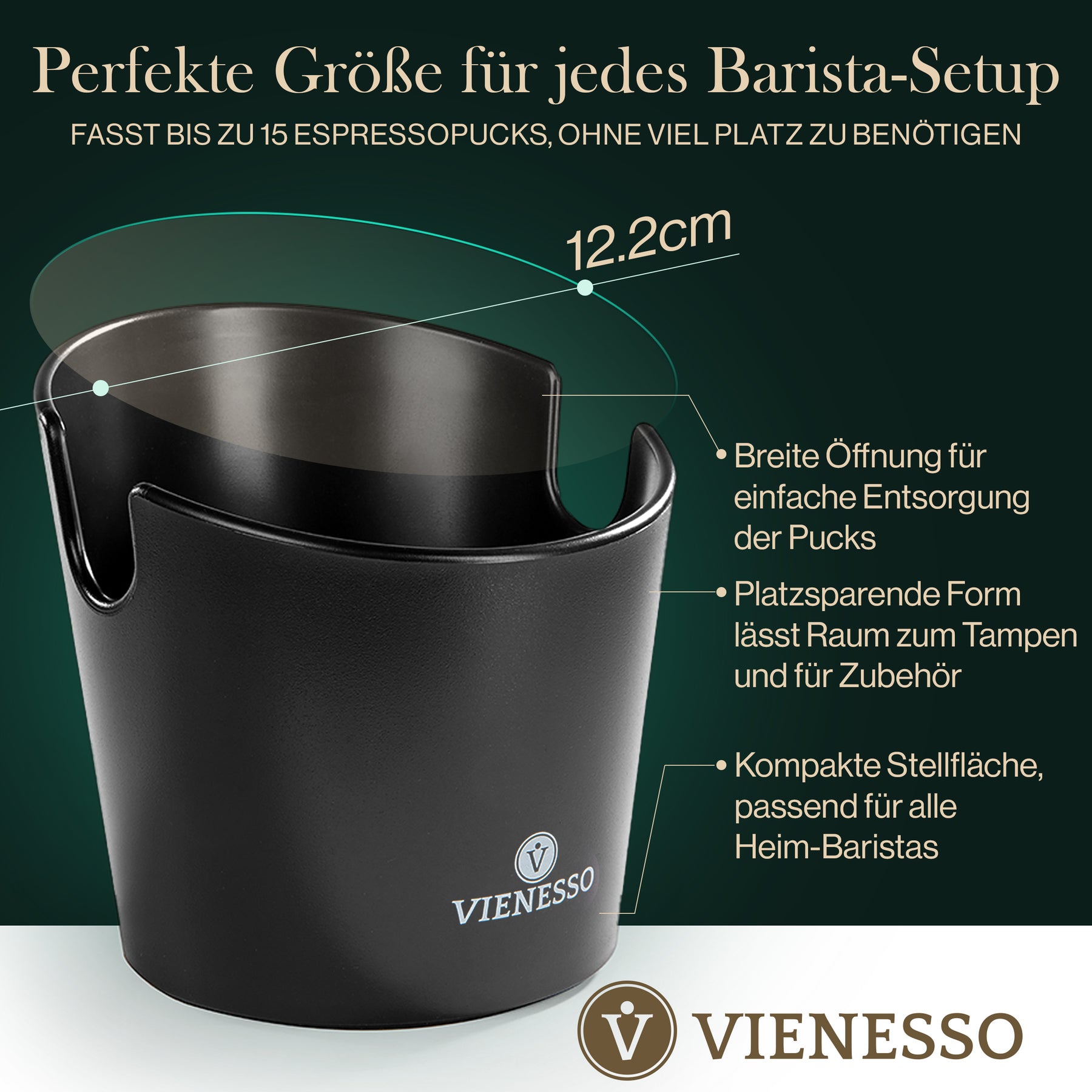 Edles Design und ein echter Hingucker: Der Vienesso Tresterbehälter besticht durch sein edles Design und unterstreicht die einmalige Barista-Kaffeekunst.