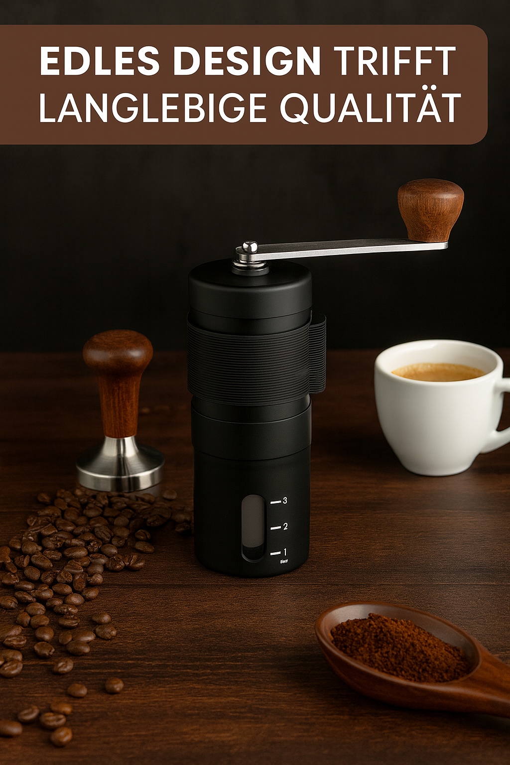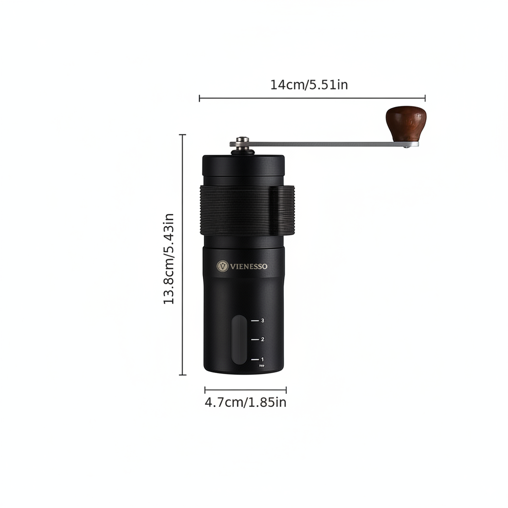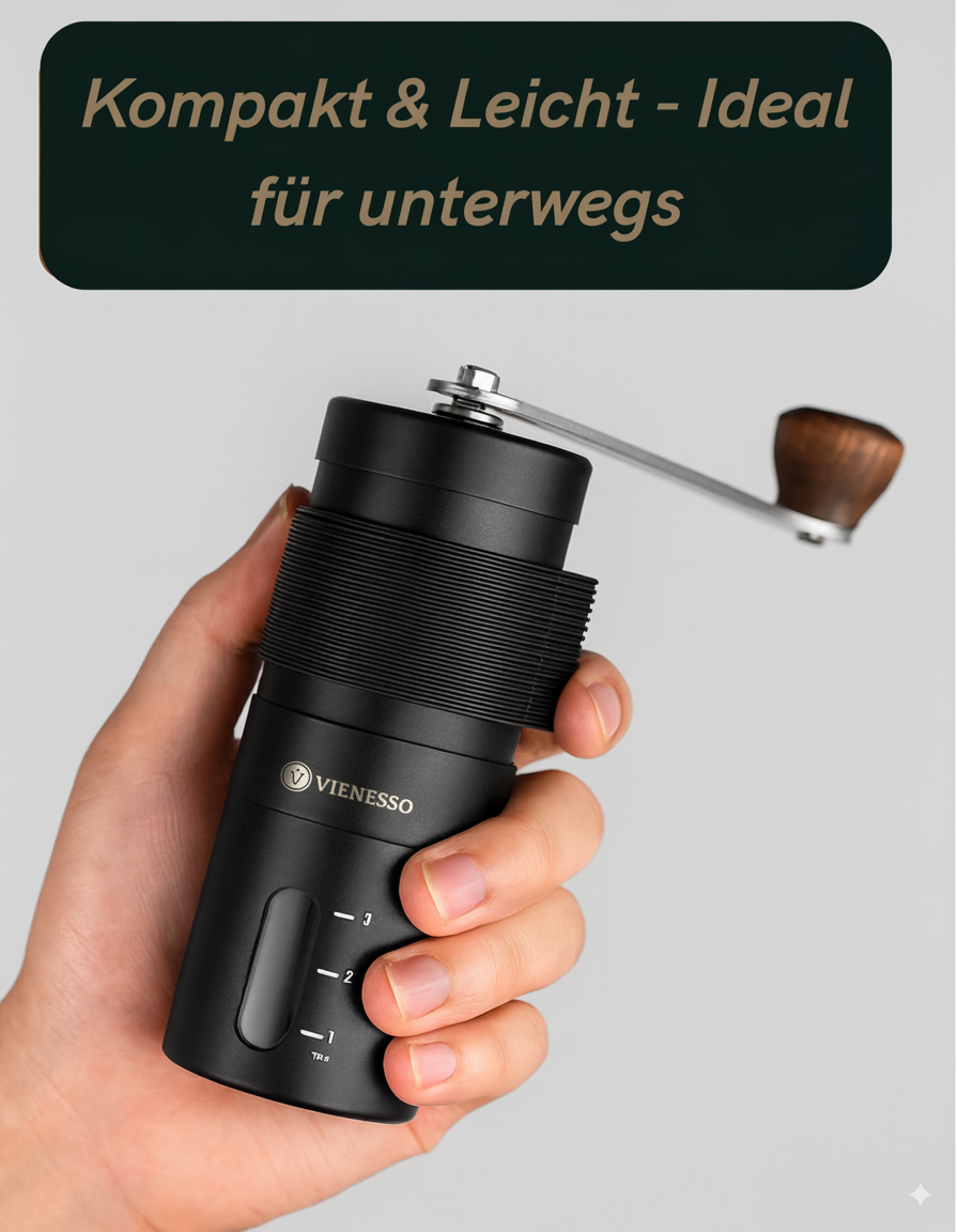 Die manuelle VIENESSO Kaffeemühle mit langlebigem Keramikmahlwerk garantiert ein gleichmäßiges Mahlergebnis ohne Metallabrieb und Eigengeschmack. Ihr elegantes, kompaktes Design in edlem Schwarz passt perfekt in jede Küche. Mit der stufenlosen Mahlgradeinstellung lässt sich der Mahlgrad individuell an Espresso, Filterkaffee, French Press oder AeroPress anpassen. Dank handlicher Größe und ca. 25 g Bohnenkapazität ist sie ideal für unterwegs und den täglichen Kaffeegenuss. Perfekt für Kaffeeliebhaber, die Qualität und Stil schätzen.